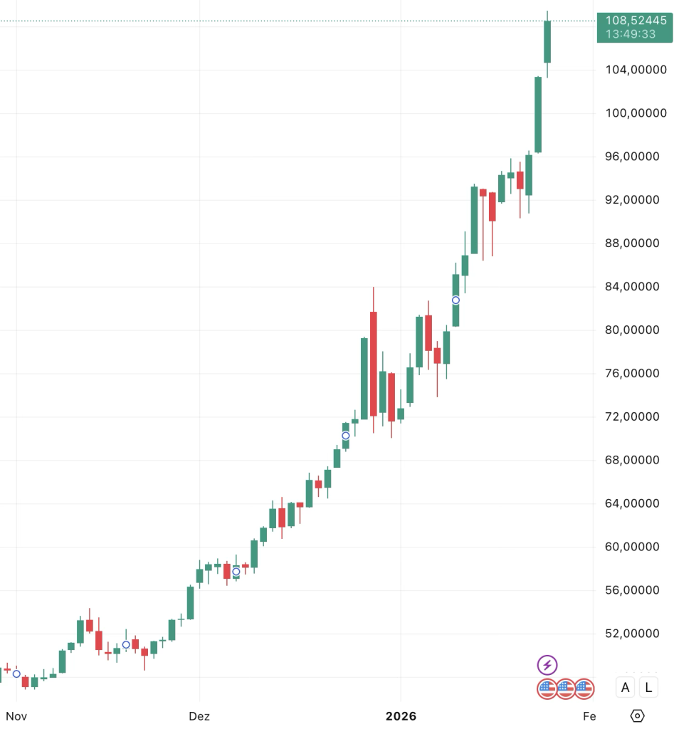 The start of 2026 marks a significant transition for the Federal Reserve, as Jerome Powell’s eight-year tenure as Chair approaches its conclusion in May. With President Trump currently interviewing potential successors, markets are pricing in a high probability of a “dovish” nominee who may prioritize aggressive interest rate cuts. This climate of administrative uncertainty has significantly dampened USD demand. Simultaneously, silver has surged nearly 3%, shattering records to trade near $99 per ounce, as the retreating dollar continues to fuel a massive flight to precious metals.