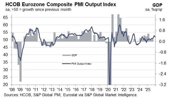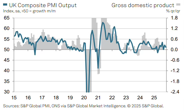 GBPUSD also started December on a firmer note as the US dollar softened on growing conviction that the Federal Reserve was approaching an easing pivot. Early gains came despite a mixed UK backdrop, with UK composite PMI easing to 51.2 in November from 52.2, signaling slower but still expansionary momentum. With no immediate negative surprises at home, sterling was able to ride early-month USD weakness.