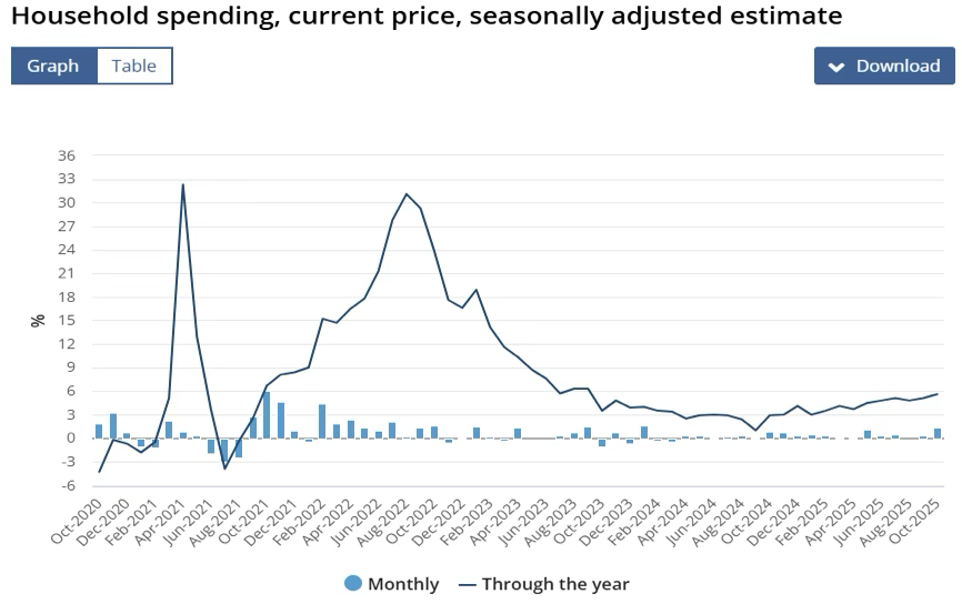 The Australian dollar climbed throughout December 2025, buoyed more by a retreating US dollar than by any significant internal shift in Australia’s fundamentals. The pair began the month on a front foot as fading US rate expectations pressured the greenback, allowing the Aussie to ride a wave of early-month risk appetite. While domestic data provided a steady floor, the figures were more incremental than transformative: third-quarter GDP rose by 0.4% quarterly (reaching 2.1% annually), and October’s household spending climbed 1.3%. Together, these results signaled an economy that, while decelerating, remained resilient as the year drew to a close.