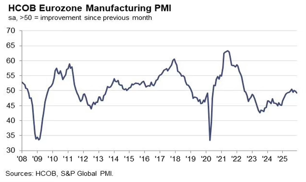 EUR/USD opened December with a firm tone as the dollar softened, driven by rising confidence that U.S. macroeconomic momentum was cooling and that a December policy pivot from the Federal Reserve was effectively a certainty. Meanwhile, Euro-area data remained broadly stable, reinforcing the view that the ECB could remain comfortably on hold. This allowed the Euro to capitalize primarily on dollar weakness rather than domestic strength.