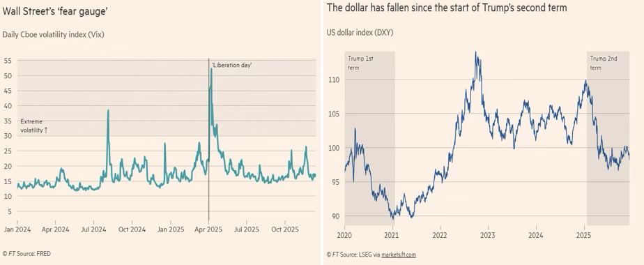 The primary source of market turbulence, however, was the unpredictability of U.S. policymaking. This uncertainty peaked on April 2nd, when the administration initiated a sweeping and punitive global tariff campaign, targeting allies and rivals alike. Concurrent public pressure on the Federal Reserve further challenged central-bank independence, creating a climate of instability that led to one of the weakest years for the US dollar in the modern floating-rate era.