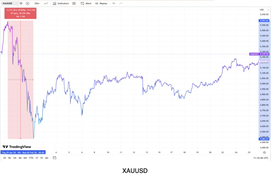The month of February began in the aftermath of a volatile period for gold, which had just endured two sessions of extreme selling. After reaching a historic peak near $5,595 on 29 January, the metal suffered a collapse of approximately 9% the following day. This sharp reversal was triggered by the nomination of Kevin Warsh as the next Federal Reserve Chair, a move that investors interpreted as a commitment to maintaining central bank independence and rolling back the “debasement” premium that had previously supported the gold rally. The resulting surge in the U.S. dollar led to widespread margin calls, forcing a rapid liquidation of positions and leaving the gold market in a vulnerable state at the start of the new month.