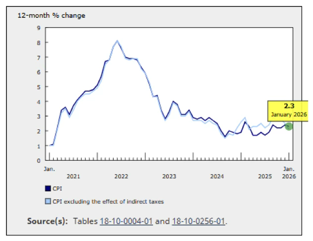 During the final stretch of February, the AUDCAD pair entered a consolidation phase, fluctuating within a range of 0.960 to 0.975 as both currencies lacked the momentum to break out. A key update arrived on 17 February with Canada’s January inflation data, which showed headline CPI at 2.3%—slightly below the anticipated 2.4%. More notably, the trimmed mean core inflation measure dropped significantly to 2.4% from 2.7%, reaching its lowest level since April 2021. This softer inflation reading exerted mild downward pressure on the Canadian dollar and provided occasional support to the pair.