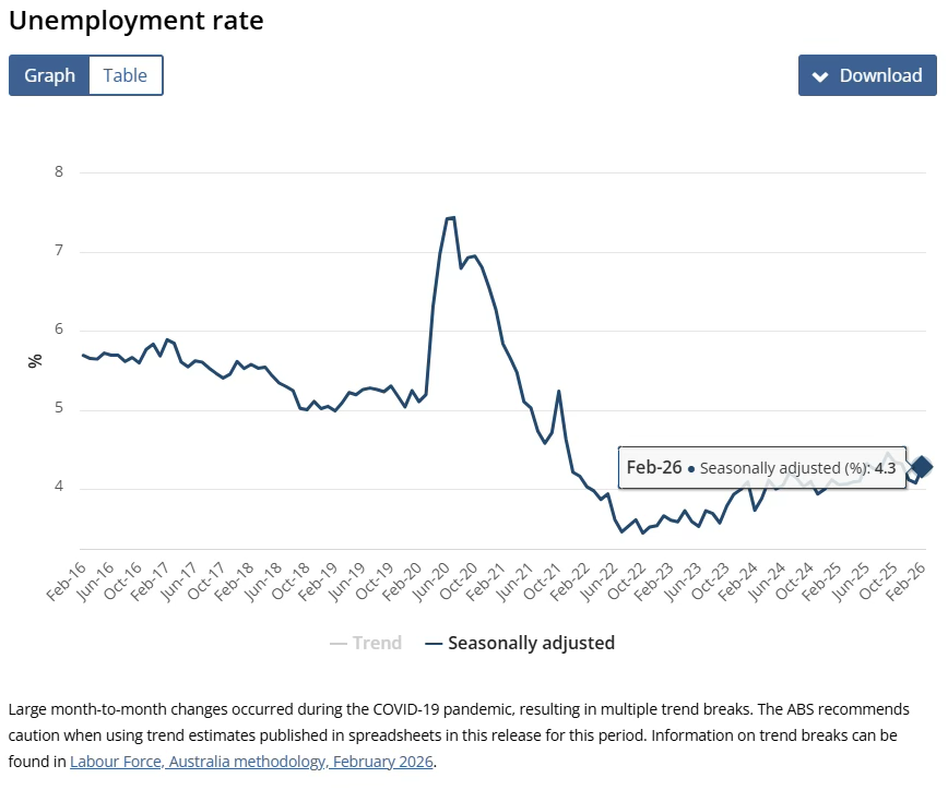 Following the monthly peak reached on 18 March, the exchange rate pulled back sharply as Australia’s labor statistics for February – released on 19 March – revealed a surprise jump in the unemployment rate to 4.3%, missing the 4.1% expectation. Although total employment rose, the data highlighted a shift in the quality of jobs: full-time positions dropped by 30,500, while the overall increase was driven entirely by a surge in part-time roles.