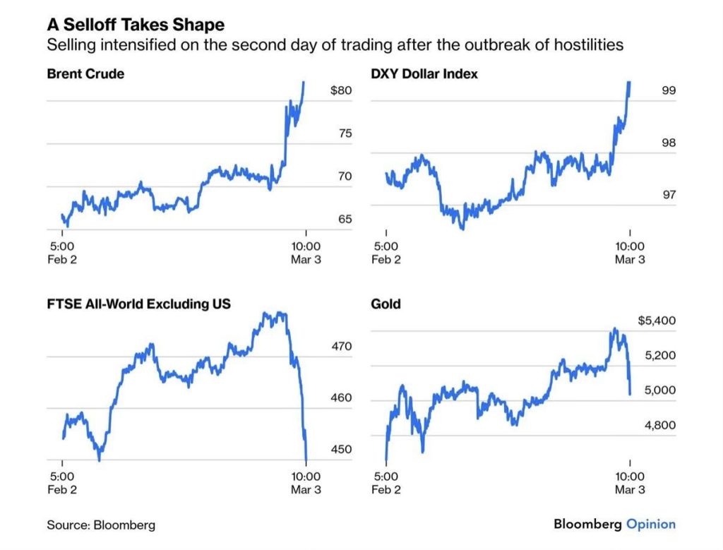 The period began with a momentary spark of standard defensive buying. Gold prices jumped from approximately $5,296 to $5,423 right after the Iranian attacks, yet this upward momentum collapsed nearly as fast as it appeared. By 3 March, the commodity had lost over 6% of its value, dropping to roughly $5,085 as investors realized a difficult truth: the spike in inflation caused by rising oil costs was boosting the greenback and removing any expectations for Federal Reserve rate reductions two major obstacles for a non-interest-bearing asset valued in US currency.
