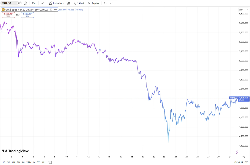 The Wall Street Journal characterized the move as the most significant one-week dollar drop for the metal since 1975. Starting at $4,860 on 18 March, gold plummeted to a low of nearly $4,100 by 23 March before bargain hunters began to step in, eventually bringing the price to roughly $4,720 as the month closed a figure nearly $700 lower than its starting point in March.