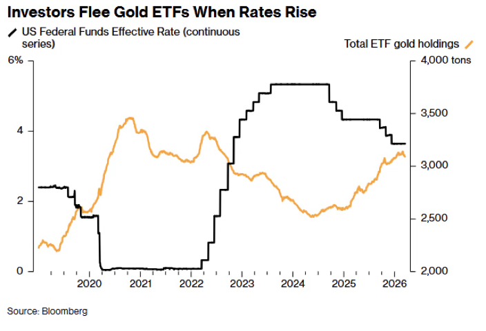 The major collapse occurred on 18 March. February’s producer price data came in at 0.7% month-on-month more than twice the 0.3% market forecast and the Federal Reserve’s decision to keep rates steady while maintaining a firm stance that same afternoon proved fatal: the revised “dot plot” indicated only a single rate reduction for all of 2026, propelling the US dollar toward the 99.9 mark. Gold plummeted 3.7% in a single session, sparking a sell-off that exceeded mere interest rate adjustments. As the prospect of prolonged high rates made interest-bearing investments far more appealing, monthly ETF withdrawals hit their highest levels since 2022 and hedge funds reduced their holdings to the lowest point since October, while margin calls in other sectors compelled investors to sell off gold holdings regardless of price.