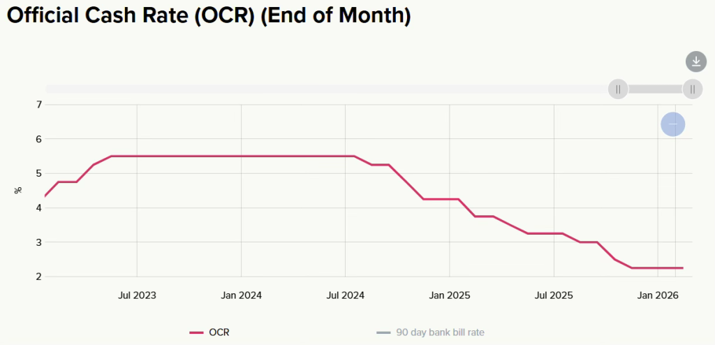 The most consequential stretch ran from 13–19 March. The RBA hiked 25 basis points to 4.10% on 17 March while the RBNZ held its OCR at 2.25% in February, an easing cycle that had delivered 325 basis points of cuts since August 2024.