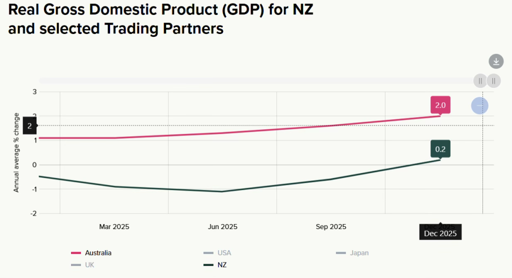 With the interest rate gap now a substantial 185 basis points in favor of Australia, AUDNZD climbed toward its highest levels of the month. New Zealand’s fourth-quarter GDP data, made public on 19 March, highlighted the widening performance gap between the two neighbors: the economy grew by a mere 0.2% for the quarter – dwarfed by Australia’s 2.0% expansion – and fell short of the 0.4% predicted by analysts. The report also pointed to underlying weakness, with the construction sector shrinking by 1.4% and spending by households pulling back.